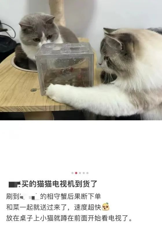 很多养猫人士把相守蟹套装当成了“猫电视”,受到了小猫们的一致好评——纷纷盯着盒子里面的相守蟹看得入神。