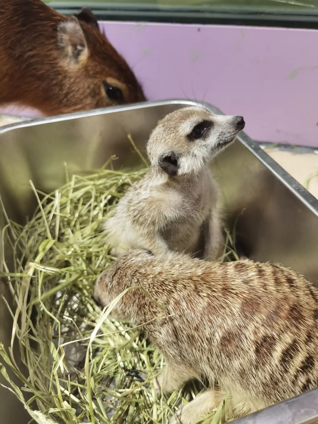 水豚,体型较大,但性格温和稳定,平时动作也比较慢。“水豚以‘佛系’形象走红,相较于羊驼等体味较大的宠物,更加适合室内经营。而狐獴作为迪士尼动画角色‘丁满’的原型,因为角色光环和可爱的外形也受到大家的喜爱。”安山介绍说。
