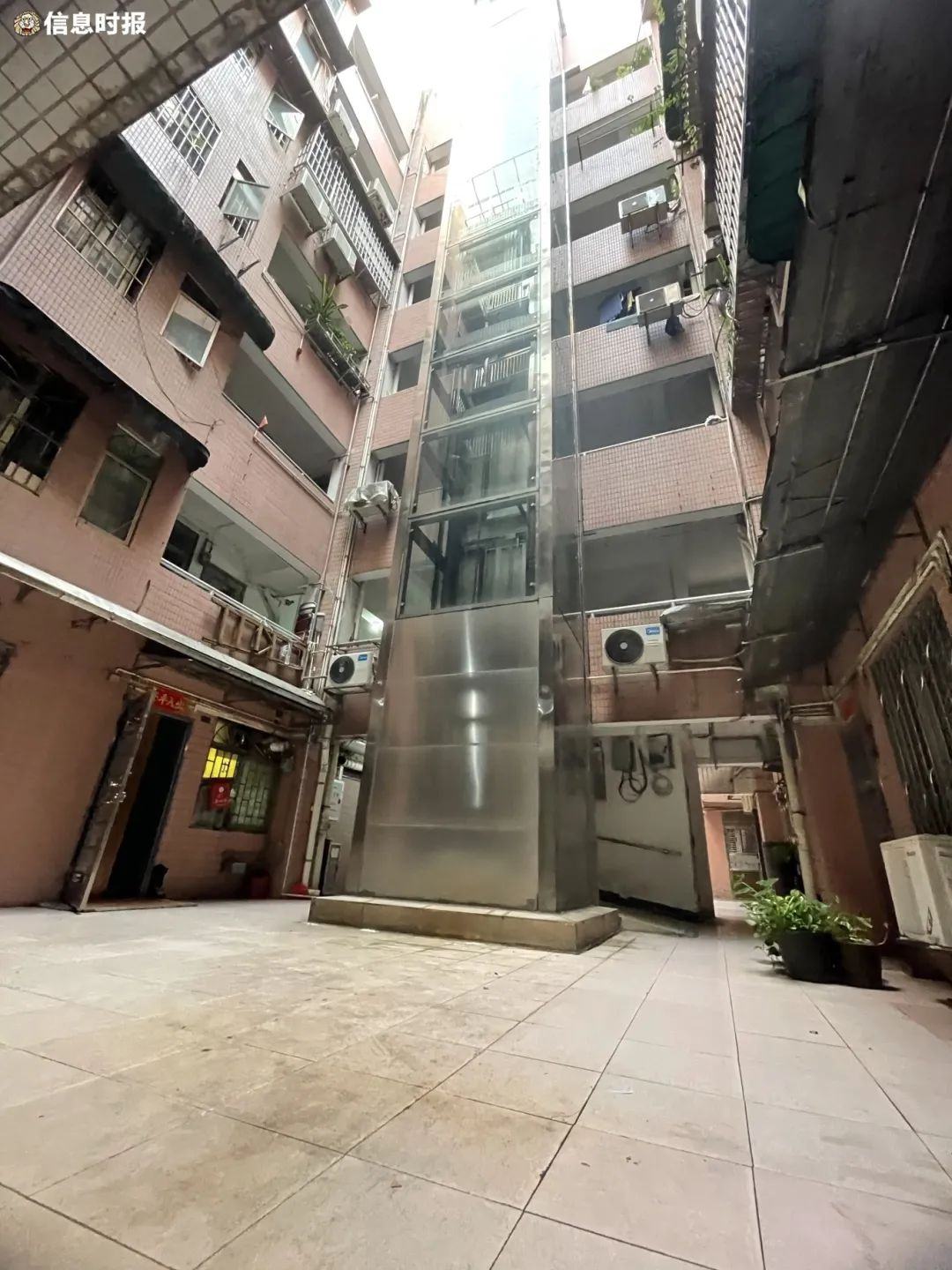 大楼外一至三楼的电梯。信息时报记者 蔡晓素 摄