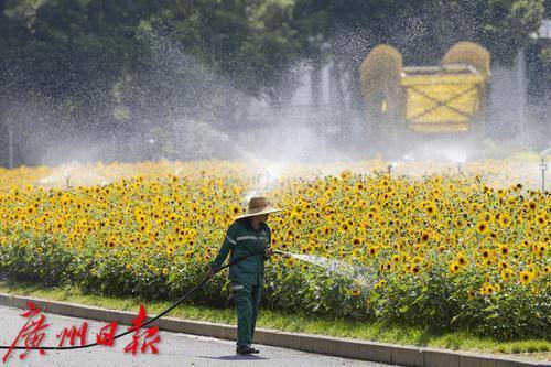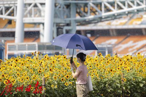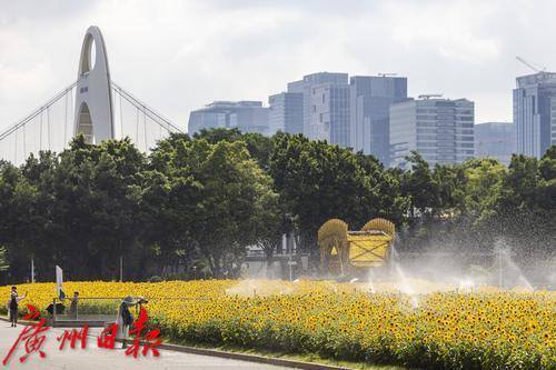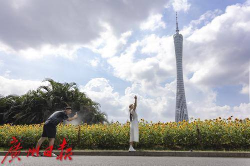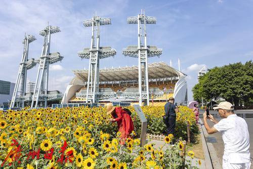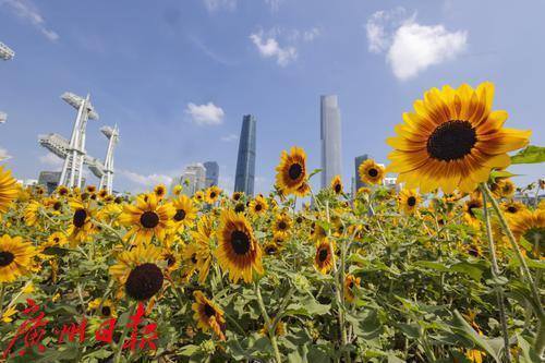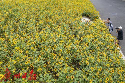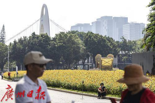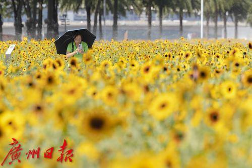2024年9月20日,本报记者在海心沙看到, 成片的向日葵已经开放,放眼望去,阳光下的金黄色花海美不胜收,周末到了,喜欢拍照的市民朋友可以带上相机来与向日葵合影。