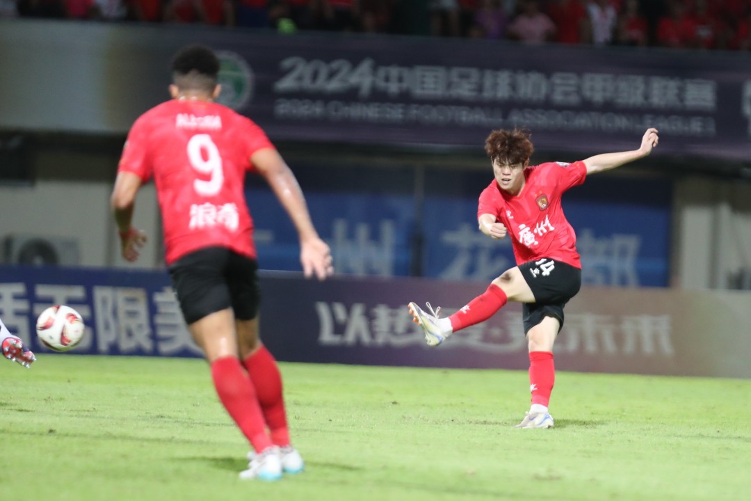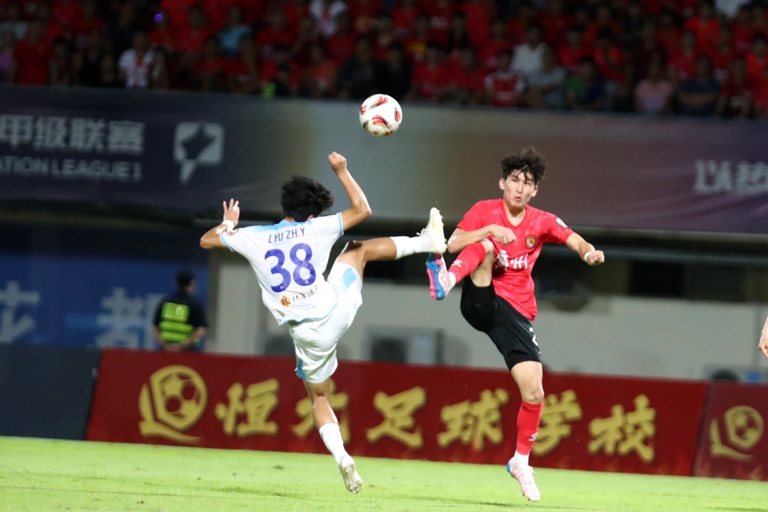 下半场,广州队向大连队施加更大的压力。第48分钟,广州队外援阿雷格里亚禁区左肋脚后跟做球,小将白余涛左路传中,队长侯煜插上凌空垫射打破僵局。