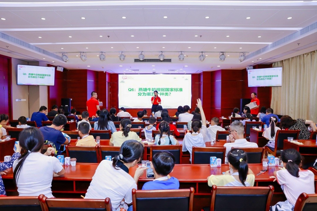 该条线路首站走进广东燕塘乳业股份有限公司。在燕塘乳业透明工厂,孩子们通过亲眼见证360°透明的牛奶智能化生产链,多角度了解乳制品生产、加工、包装的全过程,上一堂别开生面的牛奶知识课,见证一份高品质牛奶的诞生,感受优鲜智造的魅力。专业讲解员全程带领亲子队伍参观介绍沙盘、仿真奶牛,多功能厅观看《优鲜大讲堂》、同步品尝多种口味牛奶,随后开展优鲜知识竞赛、体验“奶茶里面真的有奶吗”小实验。活动现场氛围热烈和欢快,亲子积极参与各环节互动。