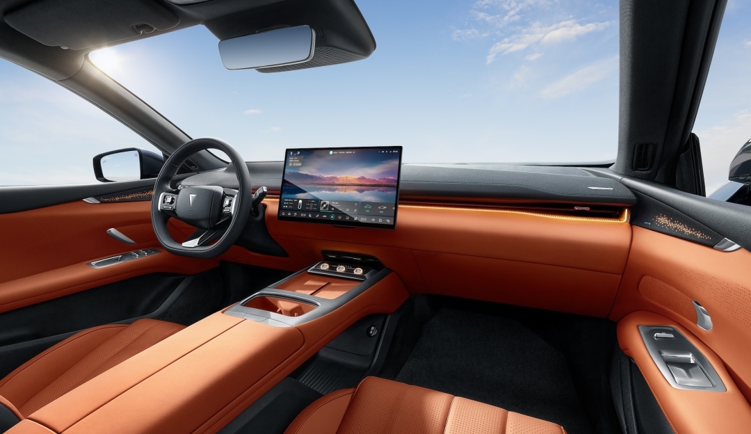 深蓝L07座舱设计以科技豪华为基调,推出白调-海洋漂浮、橙调-落日飞行、黑调-时空探索三大主题内饰风格。从一体式中岛扶手箱、多功能摇杆方向盘,到一体式高级皮质打孔座椅设计、后排触控屏、创意解锁&车窗功能按键布局,新车充分考虑人体工学设计。