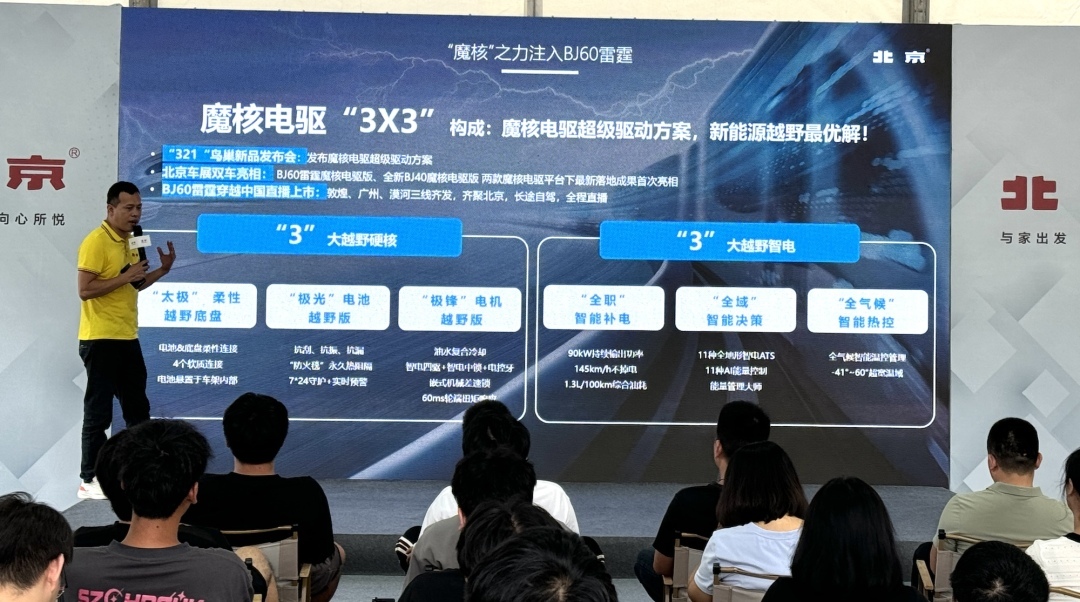 值得留意的是,2024年,是中国越野SUV品类全面电动化之年。如今几乎所有的越野车主流厂商,如比亚迪方程豹、长城坦克等,已经推出新能源越野SUV车型,标志着越野SUV这一品类正全面融入汽车电动化时代,也推动汽车越野进入到舒适性与经济性更高、性能更强的电动化越野时代。在北京汽车BJ60雷霆上市前,该车在8月20日完成了“雷霆启程,纵横山河”三线穿越中国全网直播活动。作为北京汽车进击中大型越野SUV市场的最新成果,BJ60雷霆展现出北京汽车魔核电驱3×3超级驱动方案的实力,让用户满足越野情怀的同时兼顾家用需求。