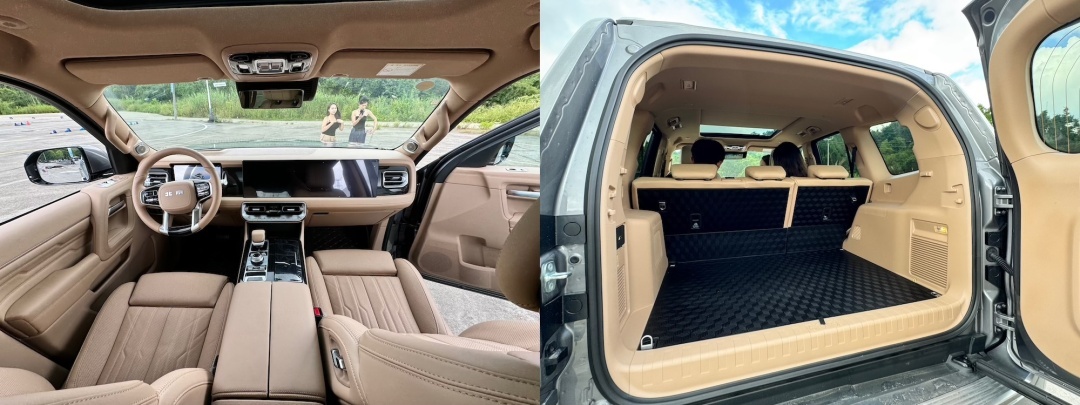 空间方面,北京汽车BJ60雷霆提供5座与7座两种座椅布局供消费者选择,后排支持0°纯平放倒,最大可提供1836L后备空间,所有装备都能装进去。车内配置豪华,主驾12向电动调节座椅+记忆迎宾功能,主副驾腿托+航空头枕,全车真皮座椅+通风/加热/按摩等功能该有的都有。而且全系标配0.82㎡全景天窗、256色氛围灯、燕飞利仕音响系统+ANC主动降噪等功能,在户外也能享受“移动家庭影院”。