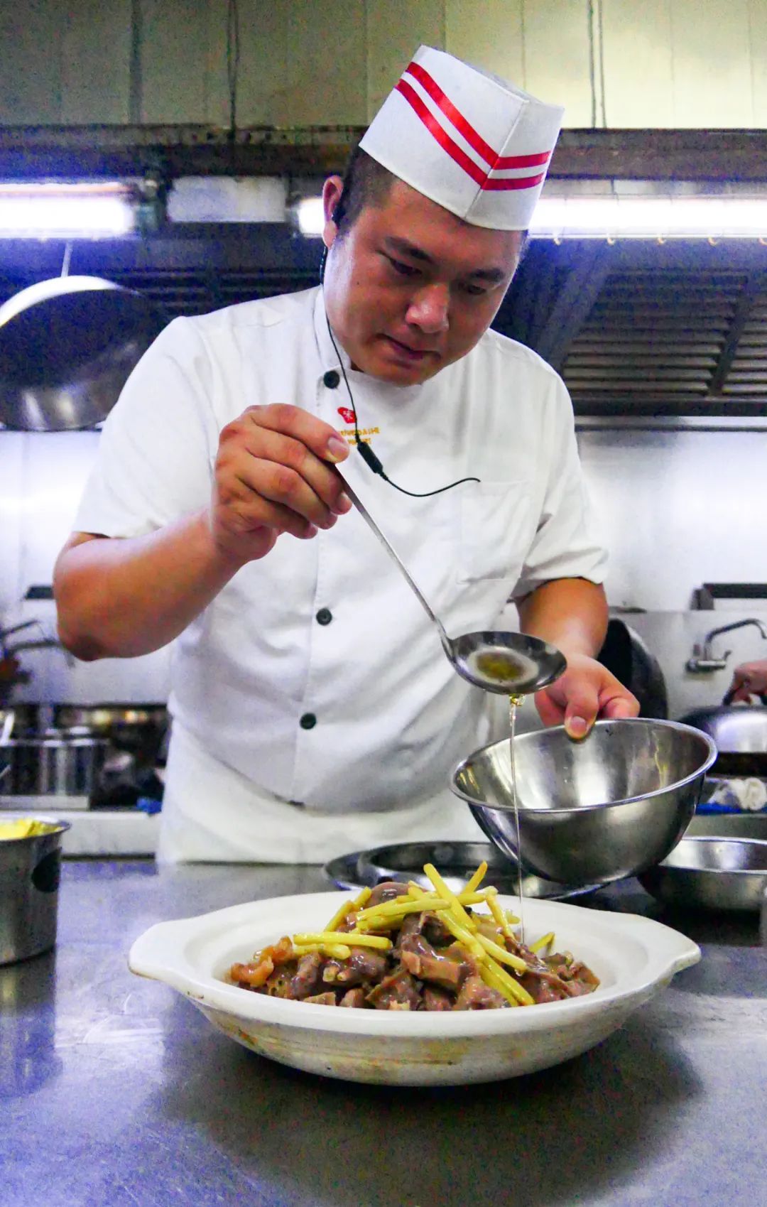 烹饪粤菜的红焖菜时,不少师傅会用姜炼油入馔,以起到去腥提香的作用。“就像做红焖水鱼时,我们也会加入姜油,其目的是增香,所以用量不需要太多。做姜油鸭用的姜油会更多,提鲜是其一,主要是让食客吃到姜的香味。”廖嘉妥介绍道。