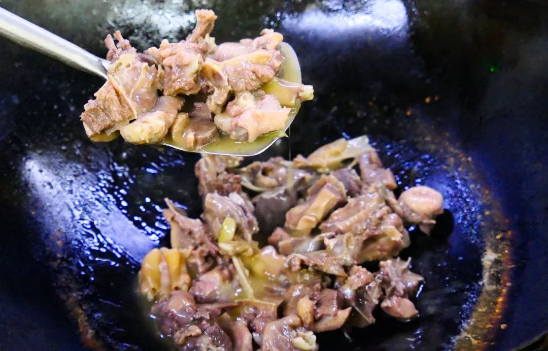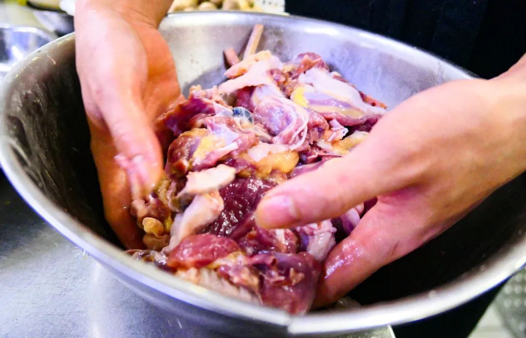 为了尽可能锁住鸭肉里的水分,厨师会先将鸭肉过油,再将鸭肉和老姜一同放入鸡汤中,好用压力锅焖入味。在压力锅的高压中,老姜的辛辣和鸭肉的鲜香都得以尽情释放,揭开锅盖时,阵阵浓郁的姜香味扑鼻而来。往里一瞧,原来师傅足足用了一斤老姜,难怪就连汤汁的颜色也变得格外金黄浓郁,看起来就觉得分外滋补。