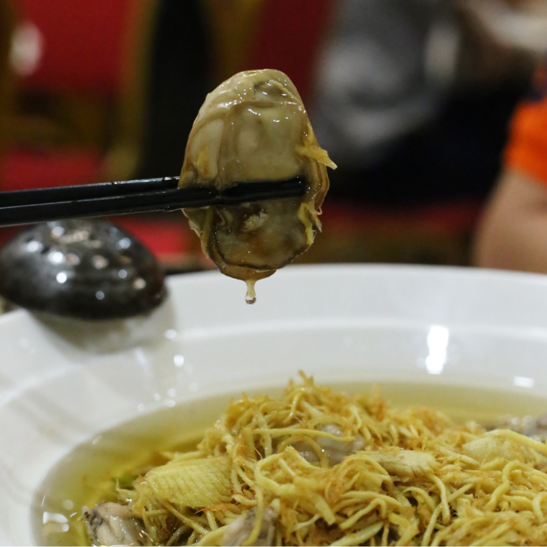 在哪里可以一尝其美味呢?文德南路上有家名为“伙少私厨”的粤菜餐馆,“姜油浸田鸡”和“姜油浸生蚝”正是他们家的特色菜。要知道,田鸡和生蚝的肉质都非常滑嫩,要让这两种食材保留鲜嫩的口感,最讲究的就是火候,非常考验师傅的技艺。最让人一试难忘的是“姜油浸生蚝”,切得细细的姜丝早已腌制入味,姜油完美地锁住蚝肉鲜嫩肥美的汁水,一口咬下去,口腔瞬间充盈姜油的咸香味和蚝肉的鲜甜味,鲜甜味爆棚!