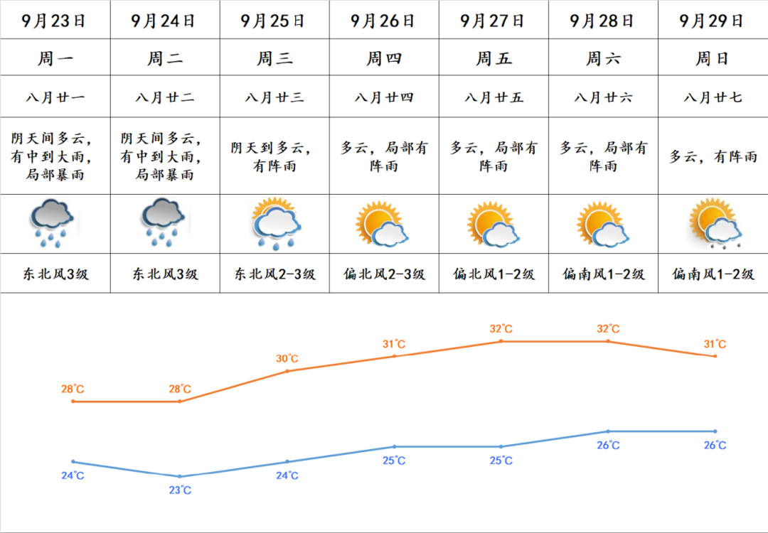 9月26日起降水减弱,多云为主,偶有阵雨打扰。