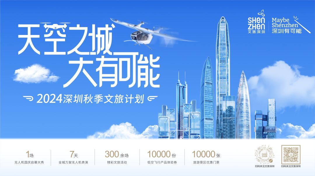 作为“无人机之都”,深圳低空经济拥有产业优势、政策优势、空域优势,全力打造“全球低空经济第一城”。今年秋季深圳面向全球游客推出“文旅+科技+低空”的“1+7+N”文旅计划,通过举办1场无人机国庆启幕大秀、国庆7天全城万架无人机表演,发放10000份低空飞行产品体验券等多重好礼,联动全城300余场秋季亮点文旅活动,展现深圳“文旅+科技”的城市特色。同时,深圳全城及全国多地公交、地铁、机场交通枢纽同步上线了以“天空之城 大有可能”为主题的文旅宣传海报。