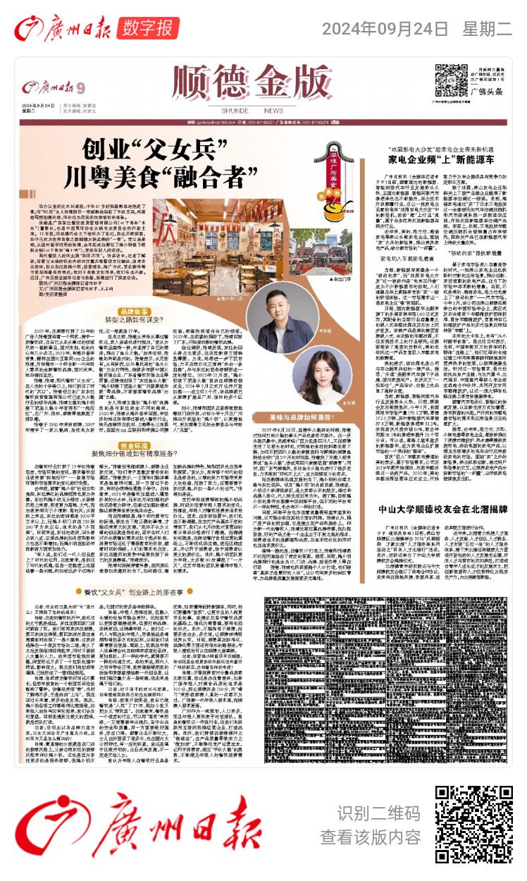 我认为年轻人在餐饮行业具备优势,如更懂得玩转新媒体,同时,他们更懂得“放权”,让更专业的人做更专业的事。我建议在坚守餐饮品质的基础上,强化内部管理,要有长远的目光。此外,不能拘泥于顺德,而要多走出去,多交流,让顺德味得到世界认可。目前,顺德菜在标准化、品牌化等方面还有很长的路要走,年轻人接班后可以在顺德大展拳脚。