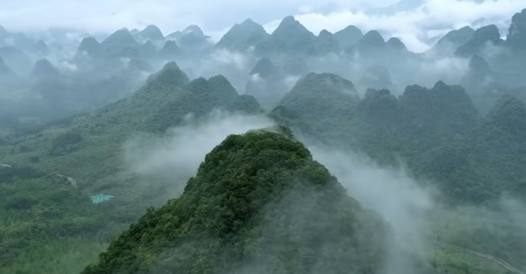 专家透露,“万山朝王”石灰岩峰林是一种独特而壮观的地质景观,其形成有着复杂的地质过程。在远古时期,这里曾经是一片广阔的海洋。海洋中的生物遗骸和化学沉积作用,逐渐形成了厚厚的石灰岩地层。