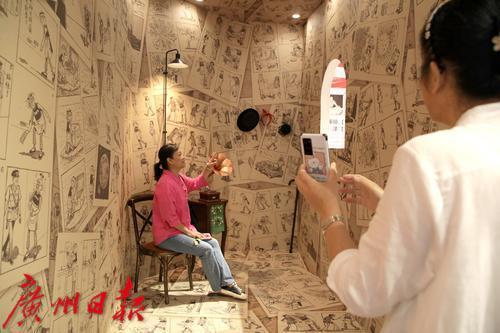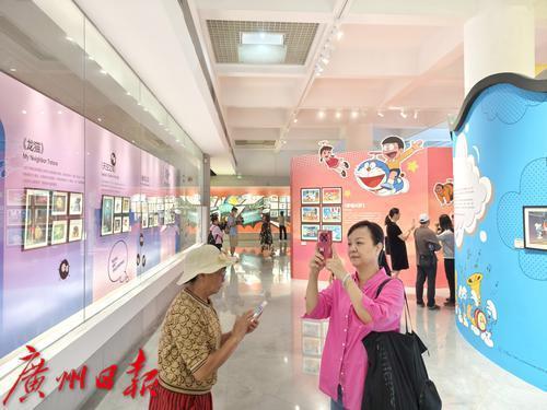 9月24日,广州人民艺术中心正式对公众开放,常设展览“JC中外动漫艺术馆”成为打卡人气最热的展馆。因为还不是周末,观众以中老年为主,当看到不少熟悉的动漫形象,有观众一边感叹早年看动漫的美好时光,一边举起手机记录眼前的画面。