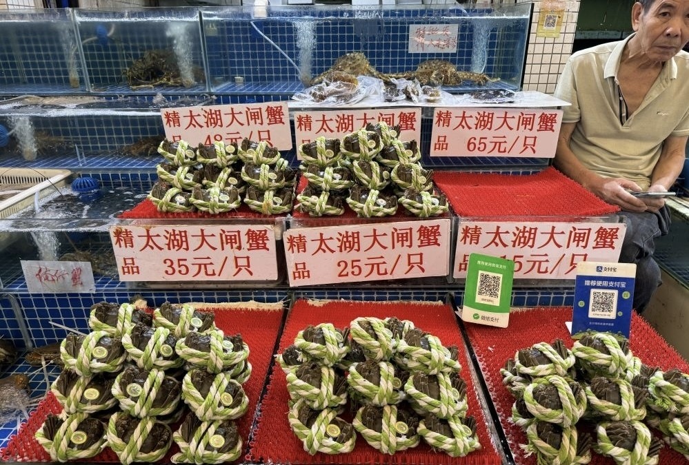 这些大闸蟹大小不一,价格也各不相同,售价为25元/只—65元/只不等。据商家介绍,自己售卖的大闸蟹来自江苏太湖,太湖蟹特有的鲜美和肥硕备受消费者青睐。