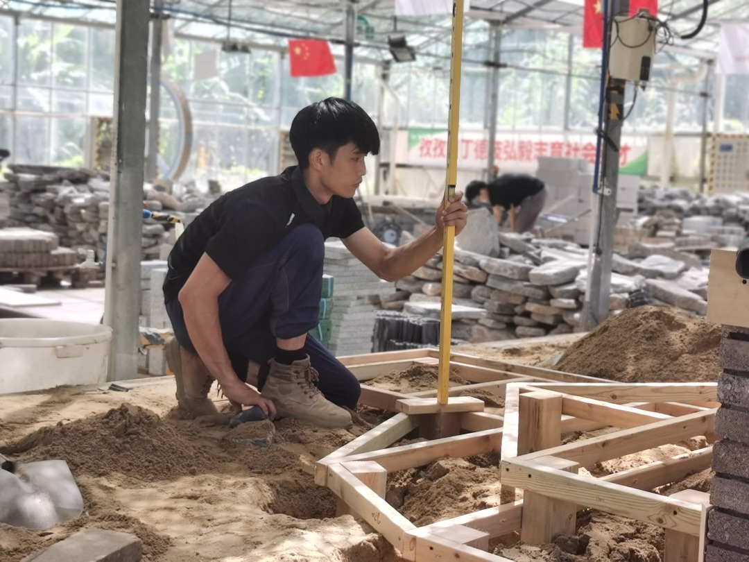 国赛后不久,李华涛便投身到了世赛集训队的考核中。集训队的训练主要瞄准世赛,对标欧洲的园林审美,李华涛需要将原来含蓄的中式园林植物空间布局手法向欧洲的对称、规则、自然散植手法转变。这是一个痛苦的过程,他不断从各种途径获取更多的欧式园林的美感体验,并将其融入反复的训练中。从单人赛到组合赛,再到多轮考核,经过重重考验,李华涛与搭档闫志广站上了第47届世界技能大赛园艺项目的赛场。比赛过程并不是一帆风顺,“闫志广的切割机出了故障,李华涛铺草皮时发现草皮不够。”赛场外的刘柏辰教练忍不住为两位选手捏了把汗。所幸两人很快调整过来,“闫志广很灵敏,李华涛也很冷静,他们俩的表现出乎我的意料。”两位选手解决问题的能力让赛场外的教练颇感欣慰。