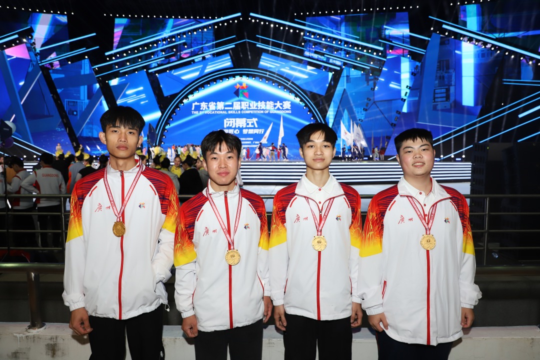 李华涛获得广东省第二届职业技能大赛园艺项目金牌(左一)
