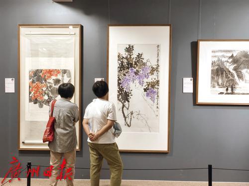 展览分为两个展区。位于1楼的1号馆展出50件名家名作,包括黎雄才的幽兰、关山月的梅花、林丰俗的木棉、林墉的双鹤等。位于负一楼的19号馆B区,则是由馆藏书画全景式地展示广州文艺发展源头与流变历程。