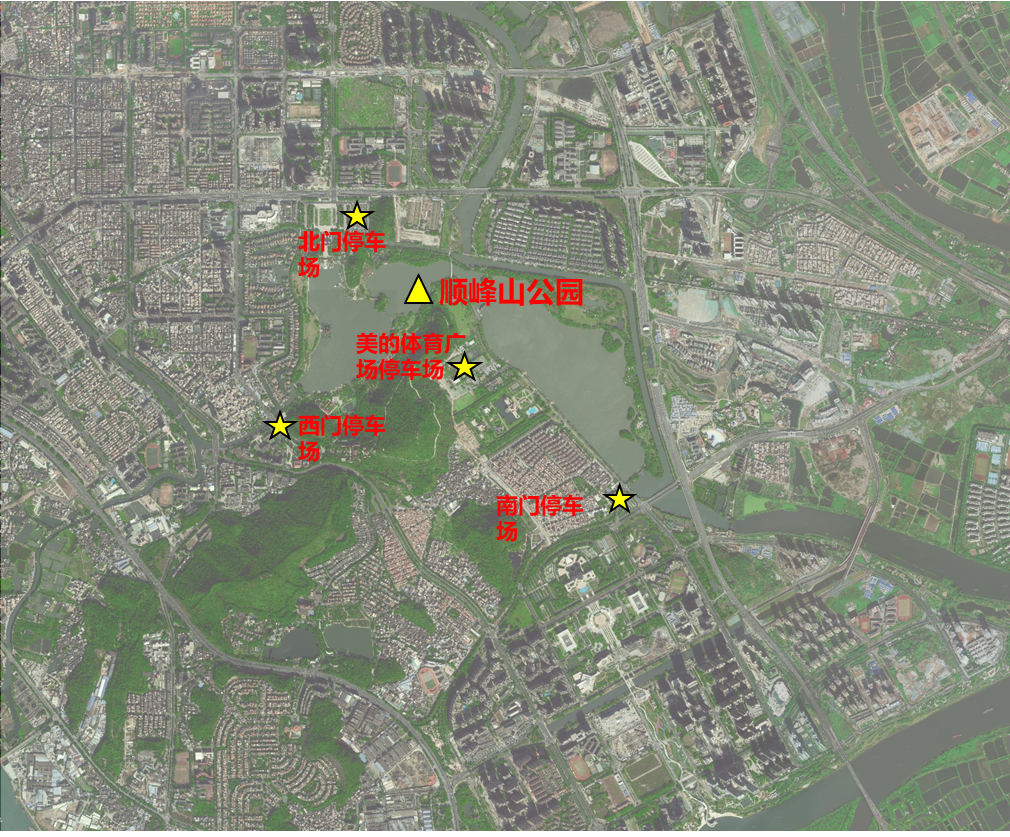 (1)顺峰山公园共开放北门停车场、西门停车场、南门停车场、美的体育广场停车场,约2000个停车位。