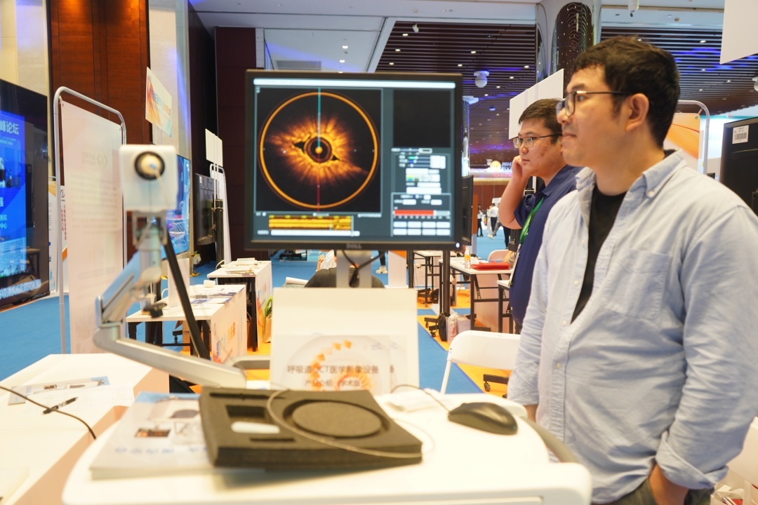 在广州永士达医疗科技有限公司展区,一款OCT诊断仪吸引了很多观展商的咨询。公司负责人向记者介绍:“OCT指的就是光学干涉断层成像,目前我们公司的OCT技术可以应用于呼吸道、生殖道、鼻咽道等人体开放性管腔,对肿瘤进行成像,不仅比CT要精准200倍,分辨率可达到10微米,并且不会产生辐射,对人体无害,目前我们对各类肺癌的诊断准确率达到93%以上,并已经与40多家顶尖医院开展合作,公司也已获得57项发明专利。”