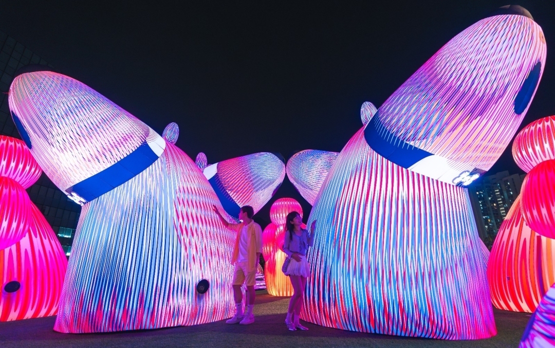 国庆当天晚上,香港将推出烟花盛宴,届时中环与尖沙咀之间的维多利亚海港海面上将绽放璀璨烟花,交错成一场视觉盛宴。假期里,不少主题装置也在香港各处装点节日气氛。