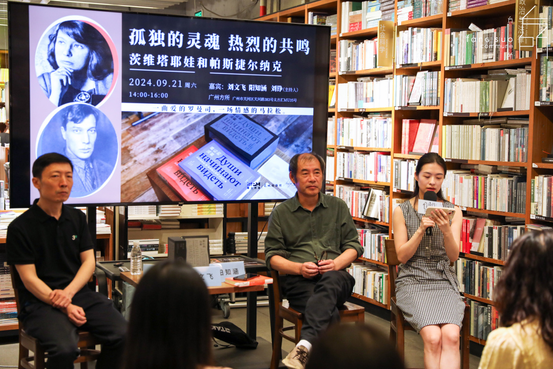 在第二天的方所现场“孤独的灵魂,热烈的共鸣——茨维塔耶娃和帕斯捷尔纳克”分享活动上,著名书评人刘铮与两位嘉宾也进行了关于书信集中的隐喻、情感表达和文化背景的深入对谈。对谈不仅涉及关于书信集的文学分析,还包括了对两位诗人个人生活的讨论。通过这两场活动,读者不仅对帕斯捷尔纳克和茨维塔耶娃的诗歌创作有了更深的理解,也对文学翻译的复杂性和创造性有了全新的认识。