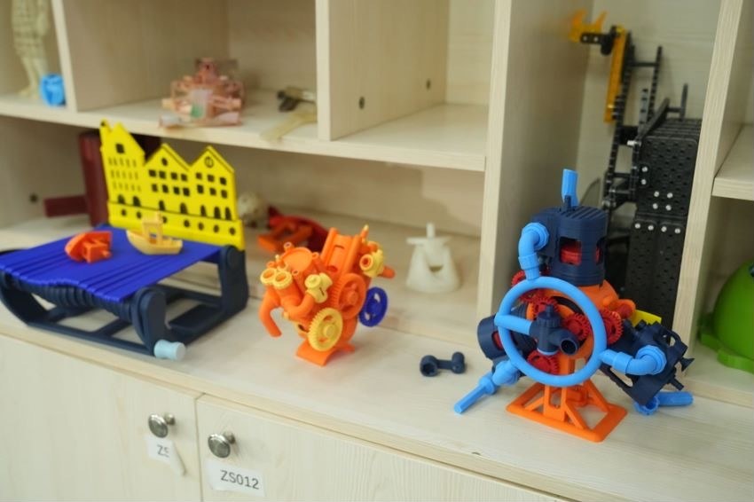 在课余时间,黄育森会设计一些造型独特的图形,再通过3D打印技术打印出来并自行组装,成品有形状各异的零件,有精巧别致的小玩意。选手们在一起分享作品,解压的同时也可以提升3D打印及装配能力。