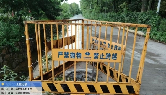 市民李先生向12345热线反映赤坭镇石坑村张屋门口附近井盖已凹陷破损,对过往车辆及行人造成困扰,存在安全隐患,希望有关部门能尽快处理。了解情况后,赤坭镇综合保障中心立即安排专业技术人员到现场核查。经现场分析,该处井盖因长期被车辆轮胎碾压,导致凹陷破裂,最终彻底损坏。技术人员对比现场井盖特征,判断现有仓库暂无该型号井盖存货,因此决定暂时用铁马对该处破损井盖进行围蔽防护,放置安全警示标志提醒避让,同时联系工程维护方抓紧购置同型号井盖。