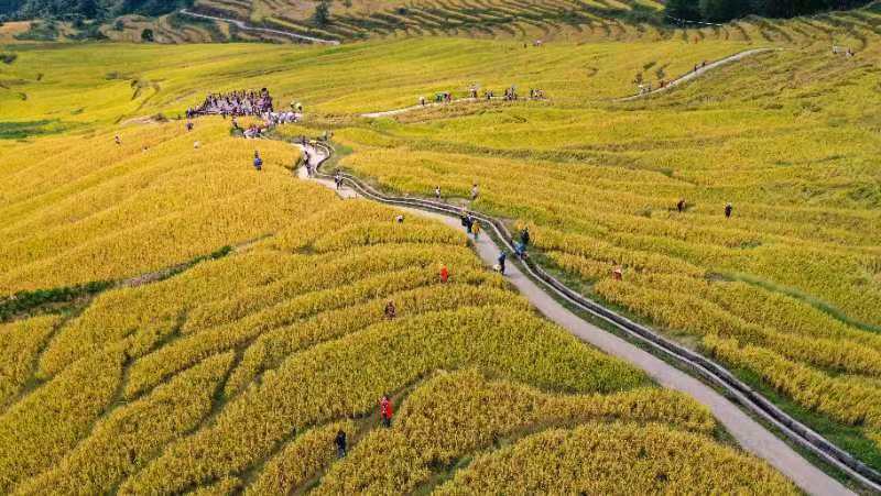 随后,经二广高速前往连山,观乡景、寻乡趣、品乡味、宿乡居、购乡货。走进欧家梯田,感受秋收的喜悦。