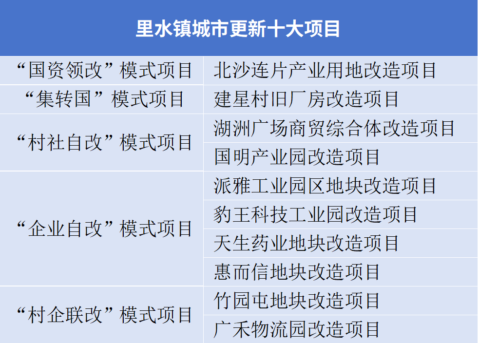 以产业转型升级为导向实施城市更新行动,是里水实现高质量发展的重要路径。里水镇党委副书记、镇长余海生表示,今年里水重点启动工改项目10个,涉及“集转国”“村社自改”“企业自改”“村企联改”和“国资领改”共五种模式,总面积超千亩,总投资超30亿元。