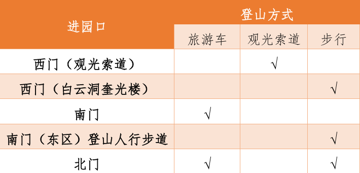 七、进园口及登山方式: