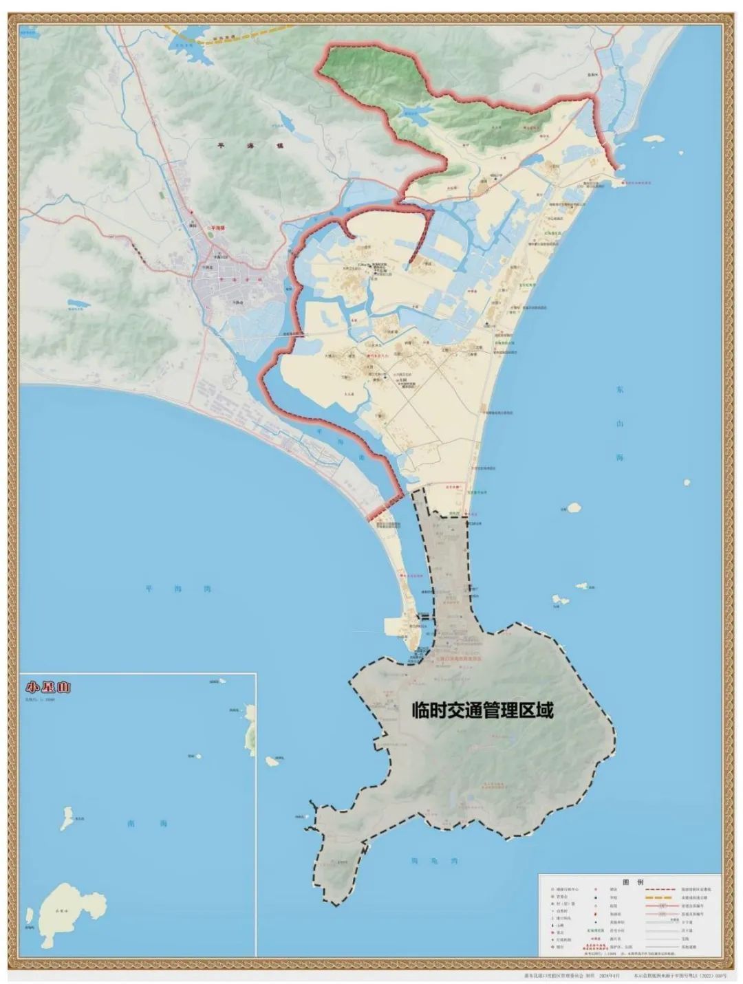 惠东县港口度假区跨海大桥东侧桥头—新寮村—大星山—海龟湾(含港口大桥即港口老桥)的圩镇主干道及周边其他道路,为本次实施临时交通管理区域。