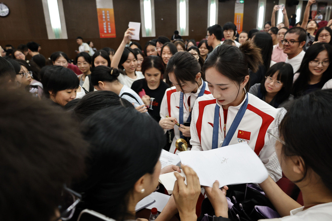 报告会上,被问及如何理解奥运精神时,两人说:“自己一直在尽力诠释‘更高更快更强更团结’,大学生虽然和我们处在不同的领域,但也要好好学习,将来为国家作贡献。”谈到解压的诀窍,她们透露,非常有必要在赛前保持适度紧张,这样能使自己保持高水平的竞技状态,“不要熬夜,冲个热水澡就能让自己放松下来,轻松入睡比什么都重要。”她们建议大学生不要“临时抱佛脚”,考前一个月左右加强练习或许会更有学习效果。