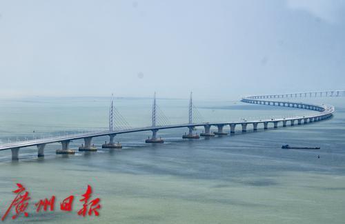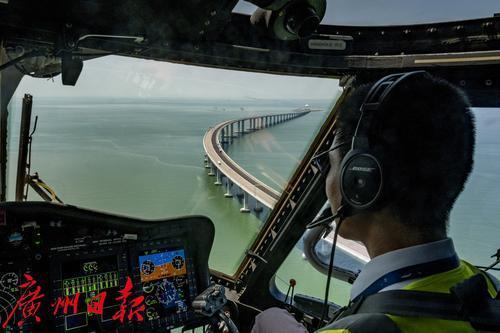 首飞后直升机从香港返回广州,飞过港珠澳大桥。