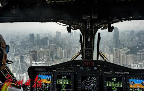 首飞后直升机从香港返回广州,直升机上飞过广州市区上空。