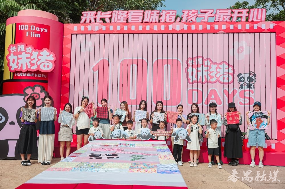 经过前期全网征集,亲子游客、大熊猫粉丝们当天自带“祝福布”到场,呈现百人齐缝百家被的温馨场面。记者在现场看到,百家布颜色各异,倾注了每一位游客与粉丝对“妹猪”的祝福,通过精巧缝制,最终集成一张带有大大的“妹猪”IP形象的百家被。据了解,这张百家被将在“妹猪”与“萌萌”生活的月子中心展示,让美好祝福伴随“妹猪”成长。