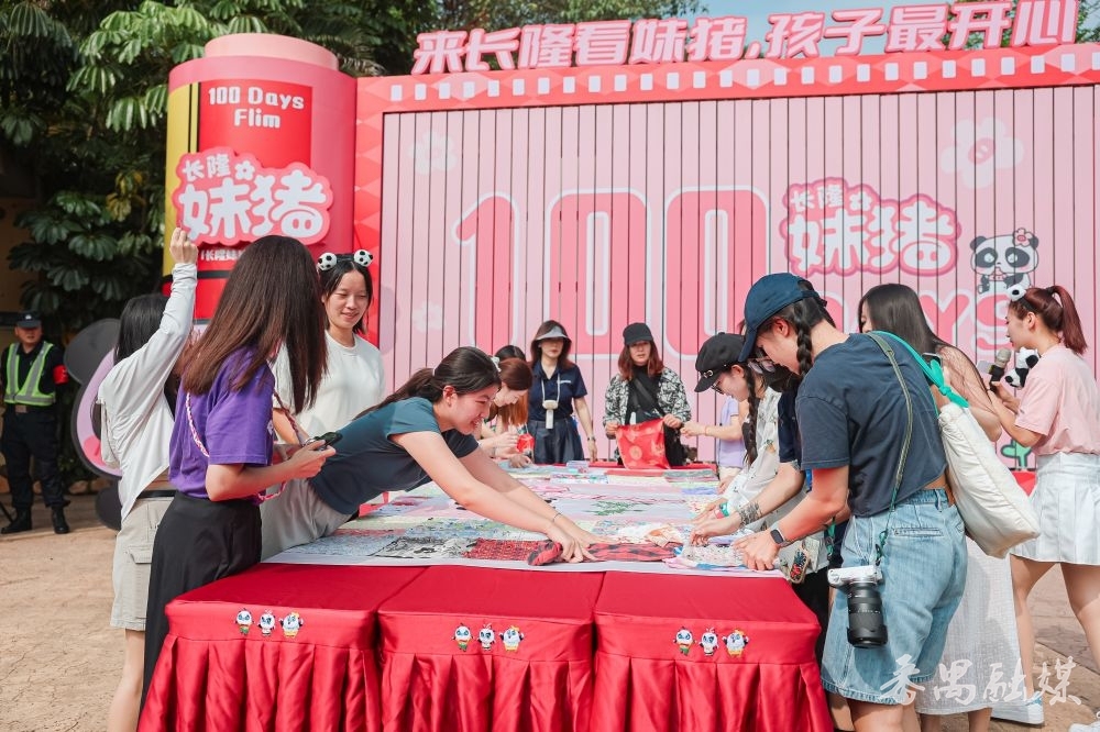 记者看到,当天,长隆野生动物世界还在园区内设置了百日照片墙、成长影像胶片筒等周边小礼物,向游客展示“妹猪”自6月18日出生至今100天的每日成长照。游客可通过游园拍照发布社交平台,获取限定百日周边礼。