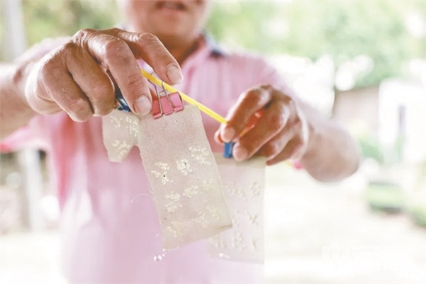 鱼塘旁的绿荫下,一个头戴草帽、皮肤黝黑、中等个头的中年人正在一边观察当天的水质情况,一边在笔记本上记录。“8月20日,水温20℃,饲料花生麸;8月21日,水温21℃……”无论酷暑寒冬、刮风下雨,他每天都会来鱼塘边走一遭,写养殖日记,记录当天鱼群的状态和水质情况,40年如一日坚持至今。