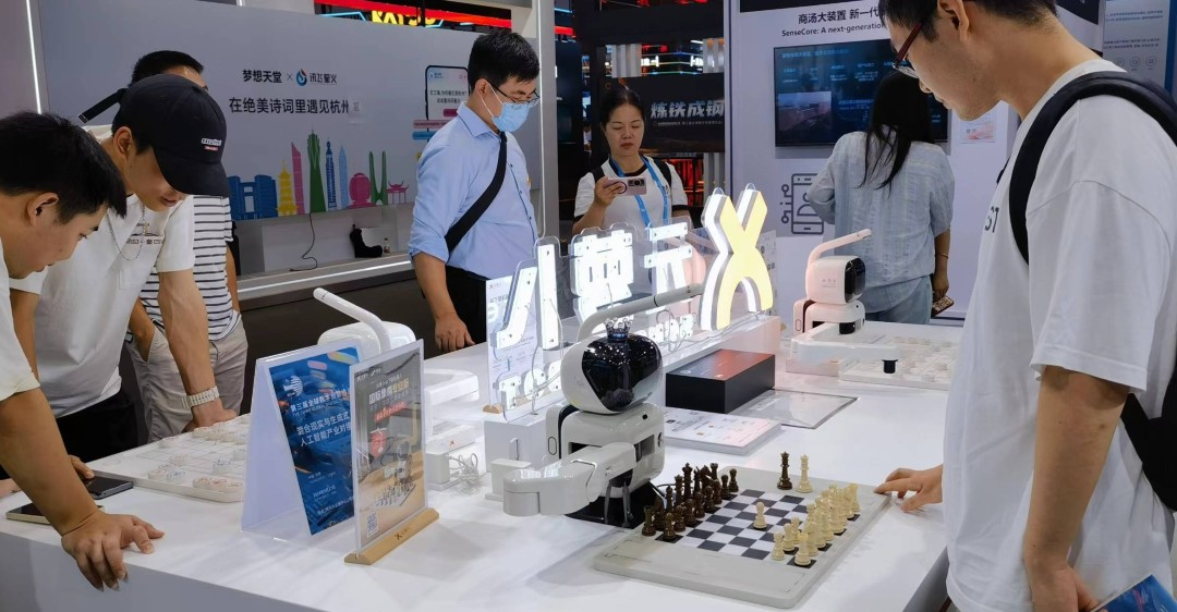 在第三届数贸会上,商汤科技的展台前人头攒动,观众们纷纷驻足,争相体验与元萝卜机器人的国际象棋对决。据悉,这是 2024年,商汤科技全新发布了元萝卜AI下棋机器人——“元萝卜国象机器人”。