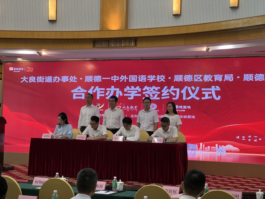 9月27日,大良街道办事处、顺德一中外国语学校、顺德区教育局与顺德澐璟项目四方合作办学举行签约仪式。此次签约标志着大良街道在区教育局及华润置地的大力支持下,成功引入顺德一中外国语学校品牌与管理,开启了高起点规划、高质量办学的新篇章。