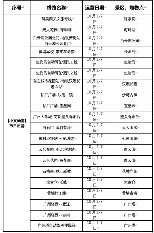 (具体线路发班、经停站点请详见“广州公交社区”微信公众号,点击“如约巴士”进行查询)