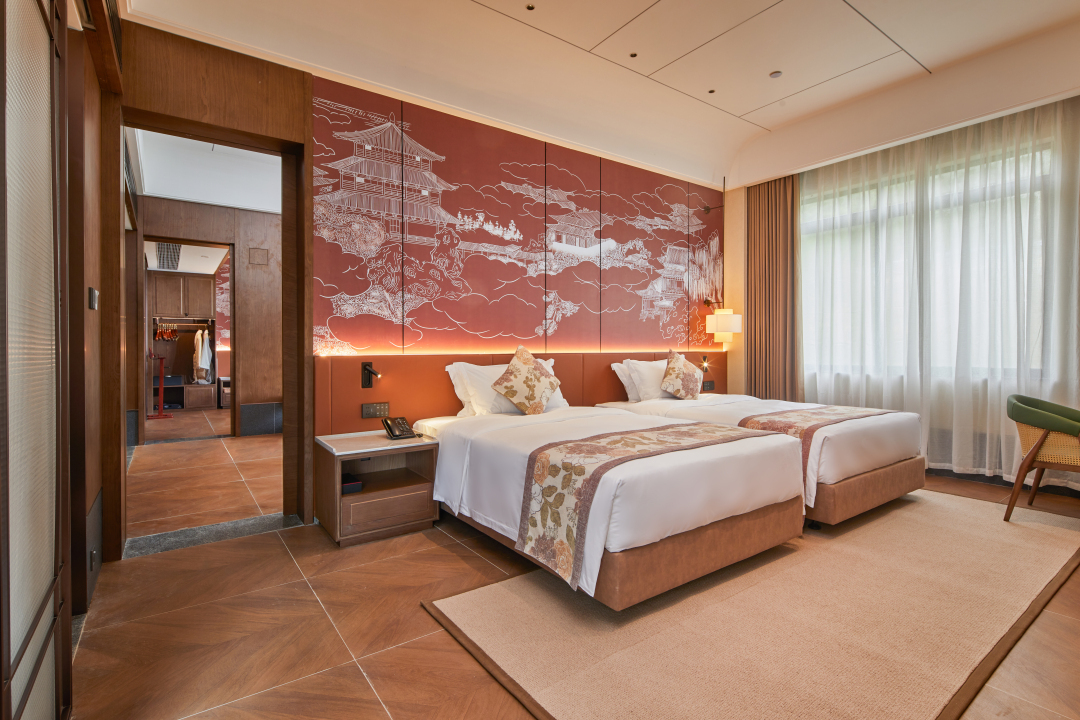 在国庆前夕,投资8000万元、历经大半年升级改造的广东温泉宾馆迎来全方位的华丽蝶变。这次升级改造,不仅仅是外观的修缮与装饰的更新,更是服务体验的迭代升级。尤其是翠溪区与兰苑区客房区域,均采用了现代化设计理念,融合传统岭南元素,营造出一种古典与时尚交织的空间美感。