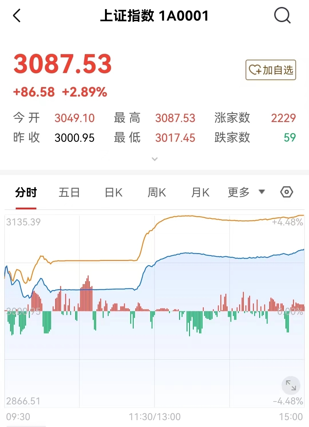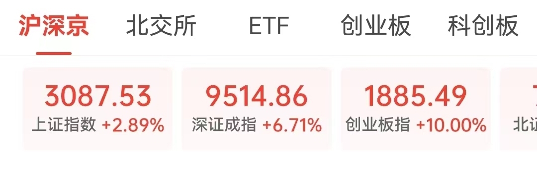 9月27日,截至收盘,上证指数收涨2.88%逼近3100点;创业板指暴涨10%,成交额刷新历史天量。沪深市场全天成交1.4万亿元,创3年新高,连续三个交易日破万亿。