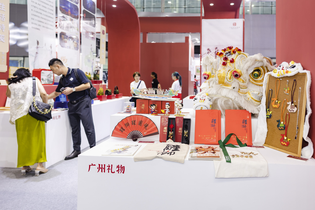 在广州文化集团展区内,特别设置广州礼物精品展,汇聚了匠心非遗、文房雅趣、文博广州、舌尖广味、羊城茶礼、创艺潮玩、芙颜丽品、锦绣风华、生活诗笺、风尚运动十个系列。“广州礼物”的展示平台以联名或独家形式,联动24家企业,展出了10系列、160多款文创产品。这些产品体现“文化+”或“+文化”的理念,有老少皆宜的醒狮文创,还有文房雅趣的羊城八景系列文创等。琳琅满目的产品陈列其中,方寸之间,让文化“被看见”。“文化创意的多样性让我惊叹,也更深刻地感受到广州这座城市的文化底蕴与创新活力。”流连观看的观众如此表示。