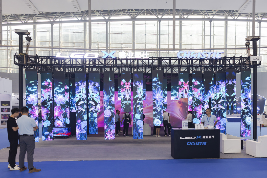 建业显仕展区错落有致的LED显示屏吸引了众多参观者的目光。这些屏幕能精准模拟舞台效果,实现多角度、多层次的视觉演绎。在不同位置观看,独特的科技艺术和光影流转都能带来全新的视觉体验,仿佛置身于充满生命力的艺术场景。穿过LED显示屏营造的视觉景象,映入眼帘的是投影技术构建的全息空间。这里,投影不再仅仅是平面的图像展示,而是通过与空间环境的深度融合,创造出强烈的沉浸感和包裹感。
