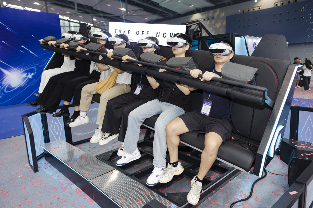 另外,充满科技感的互动装置也是文旅装备展的一大亮点,动感酷玩、射击竞技、电竞运动、数字影院等多主题VR爆品,覆盖休闲娱乐、文旅研学、科普教育、电竞体育等多领域,通过科技与艺术的结合,让科技产品更具艺术感,为体验者带来前所未有的沉浸式体验。