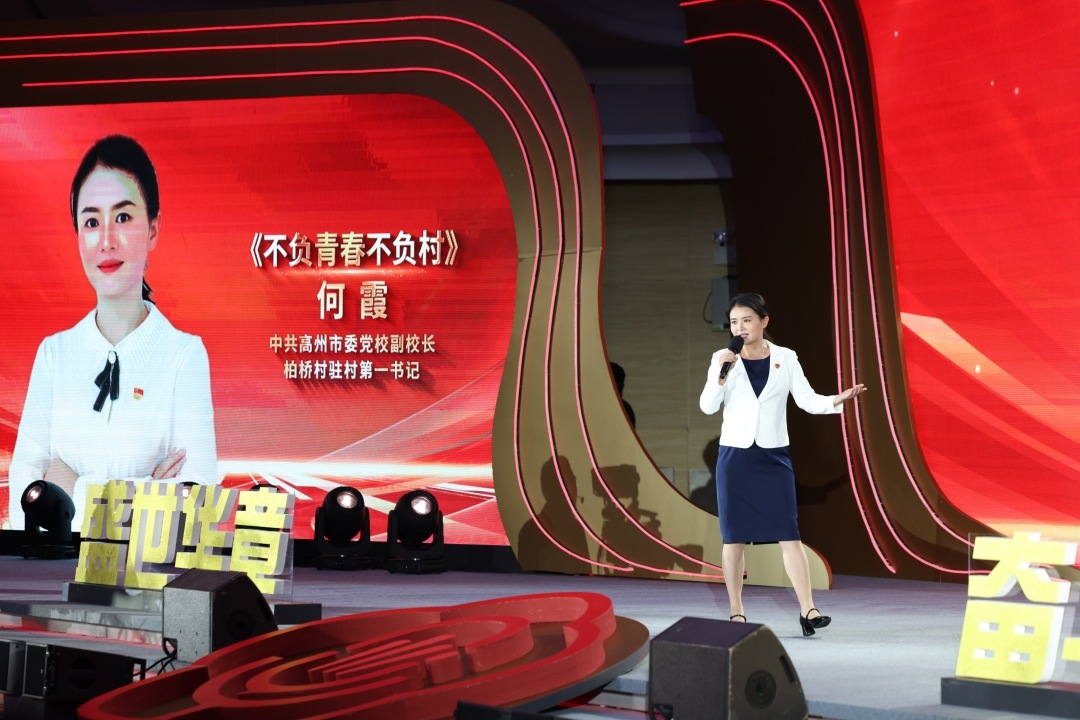 宣讲员何霞讲述了她在茂名高州根子镇柏桥村担任驻村第一书记的经历,带领乡亲们发展荔枝产业、乡村旅游产业,大力推进百千万工程。她表示,将更加努力地奋斗,让柏桥的美“荔”更加动人,让乡亲们的生活一年更比一年好,不负青春,不负美丽乡村。