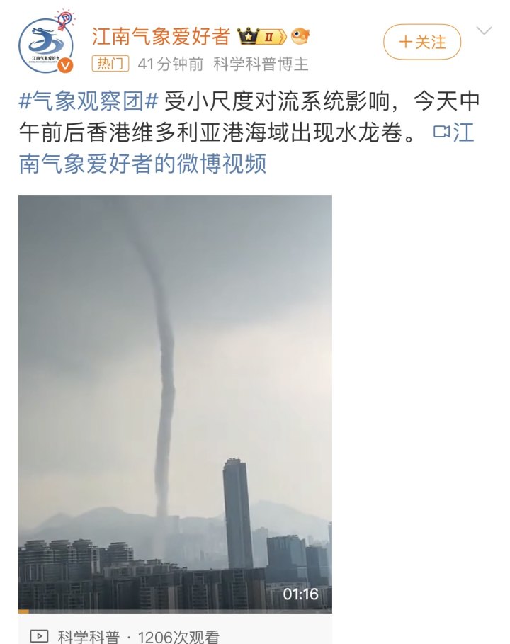不少网友表示好奇,香港地区怎么也会出现水龙卷?