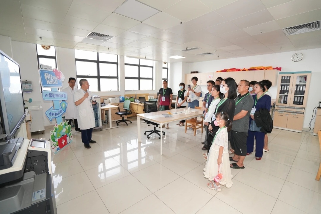 市民参观团先后参观体验急诊医学科、青少年近视防治中心、VR智能外科设备、骨科等,了解就诊流程,感受医院拯救生命的“科技力量”。