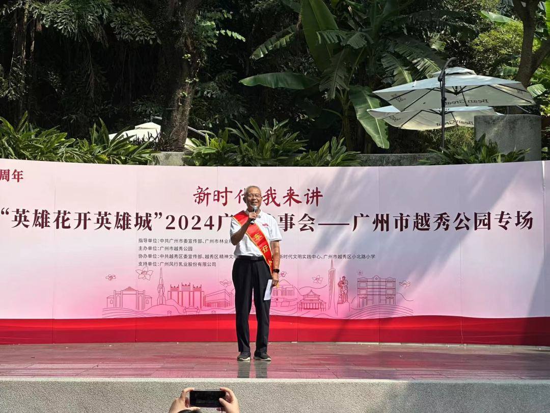 9月28日,“英雄花开英雄城”2024广州故事会广州市越秀公园专场活动,在越秀公园东秀湖畔举行。在象征广州悠久历史和深厚文化底蕴的广州古城墙下,活动通过讲述红色故事、“广东好人”故事、国防教育故事,“唤醒”红色记忆、“激活”红色基因,唱响新时代赞歌。