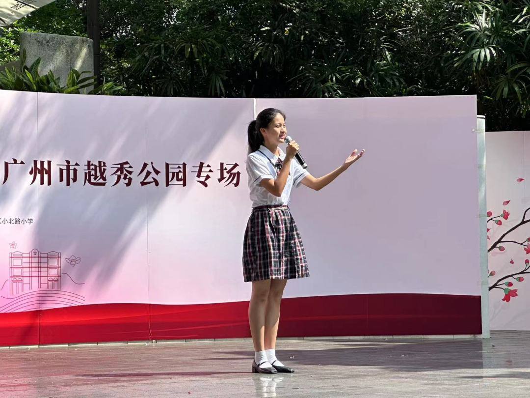 英雄花开英雄城,英雄城育英雄人,红色基因的传承,构筑起强大的精神城墙。来自天河区华阳小学、天河区天府路小学的孩子们通过舞蹈《童心向党》、朗诵《裕安围的小英雄》表达爱党、爱国的真挚情感;广东实验中学的学生们以朗诵《我爱你,中国》《少年中国说》向祖国母亲献礼;越秀区小北路小学师生以《和光同尘》《我和我的祖国》两首深情而又激昂的歌曲唱出时代之声。孩子们用精彩的演绎礼赞英雄城的壮丽情怀,赓续红色血脉,争当时代新人,展现了朝气蓬勃的风采,引得现场游客纷纷点赞。